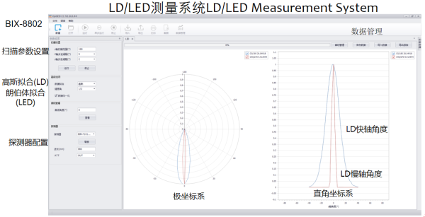 当BRM-6301和BRM-610X系列激光驱动控制器、BRM-620X系列TEC温度控制器配合使用时,针对小角度的LD,除了可以测量激光二极管的发散角,还可以测量分析激光二极管的P-I-V曲线、阈值电流、WPE等特性参数。 非常适合工业、科研待领域应用。