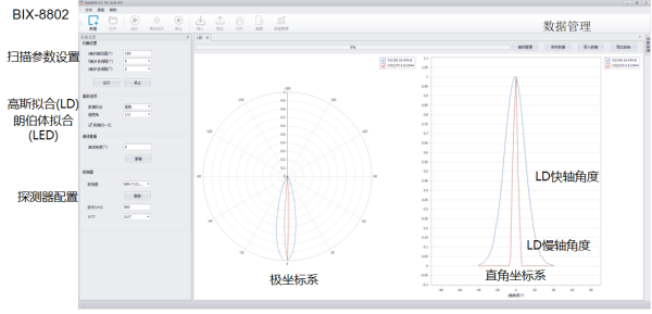 BRM-6301是一款全自动发散角测试仪,专门针对大发散角激光二极管设计,解决了光斑分析仪只能测量远场发散角较小LD的问题。支持一键自动测量,可输出极坐标和直角坐标角度分布图,可选择输出半强度角数据等。BRM-6301配置灵活,可根据待测LD实际的波长、功率、封装形式等选择探测器和安装座类型。同时,BRM-6301也可用于LED的角度分布测量。